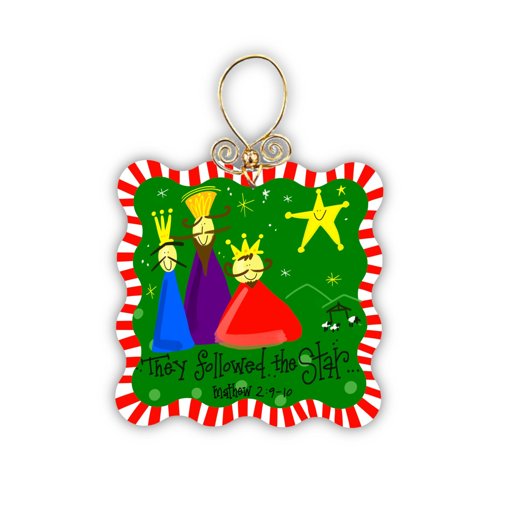 These 1/4" thick ornaments are made from TomTom's original painting. Each ornament is hand glittered and wired in our studio.